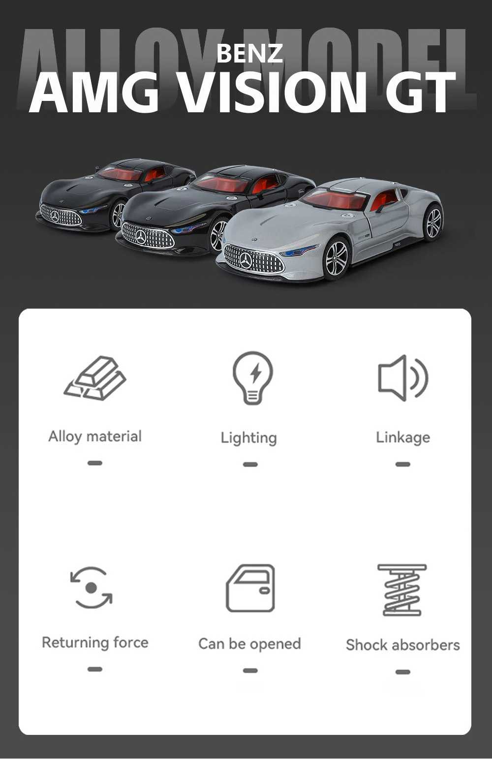 •  Exquisite 1:24 Scale Model – A stunning, highly detailed replica of the legendary AMG Vision GT supercar.