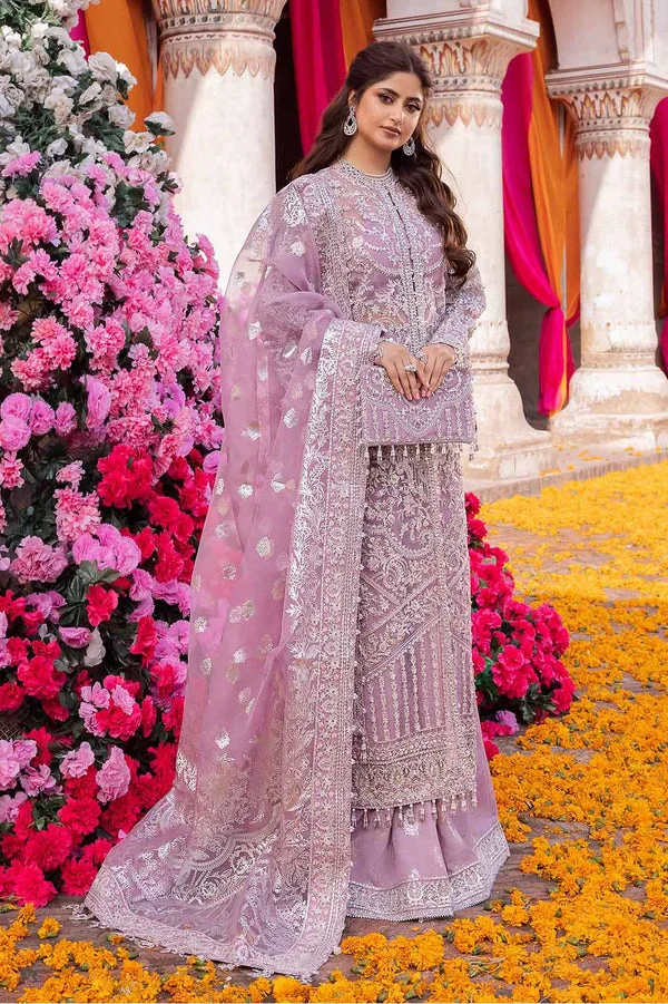 Introducing the Kanwal Malik Unstitched Replica, a graceful ensemble crafted on premium organza fabric. The shirt features exquisite sequence and hand embroidery, adding a luxurious touch. Paired with a beautifully printed organza dupatta and a soft printed silk trouser, this outfit perfectly blends elegance and sophistication for festive or formal wear.