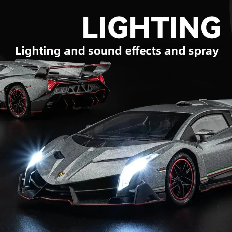 ✓ Precision 1:24 Scale Replica – Meticulously crafted to replicate the real Lamborghini Veneno’s aggressive design and aerodynamic curves.