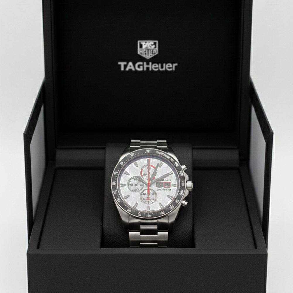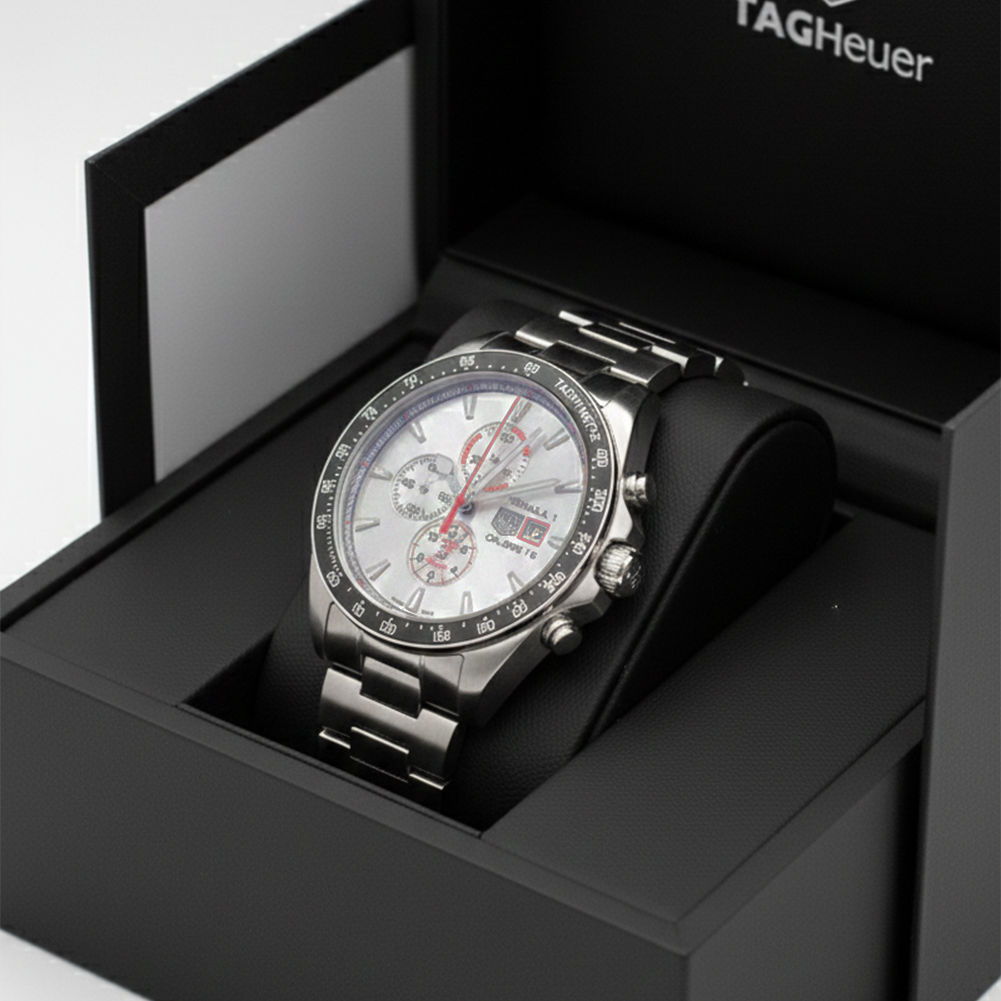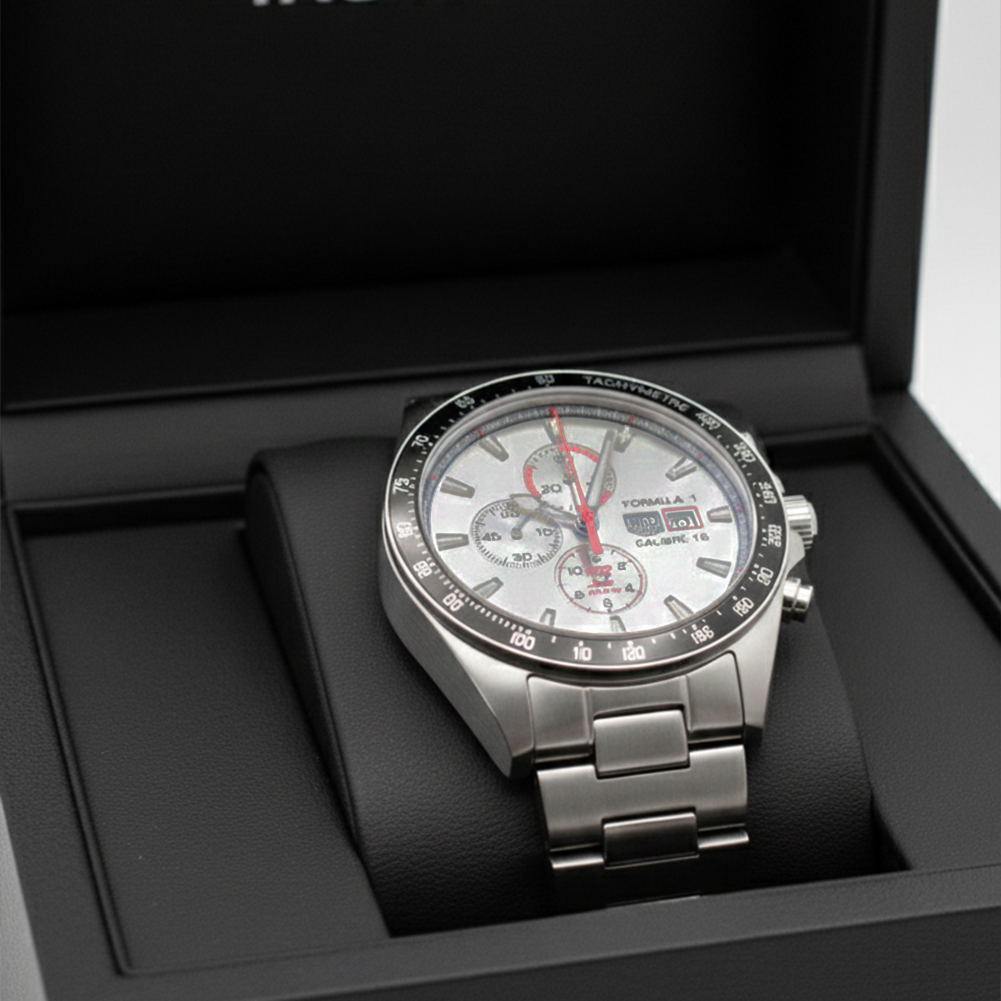 Inspired by the dominant style of race legend Ayrton Senna, this 44mm automatic chronograph is a Special Edition with Senna’s original red watch colour as it continues to pay homage to the master of speed. The powerful automatic movement Calibre 16 equipped this new version with an even stronger design. A vibrant tribute to Ayrton Senna, an admired and adored legend for motor racing.