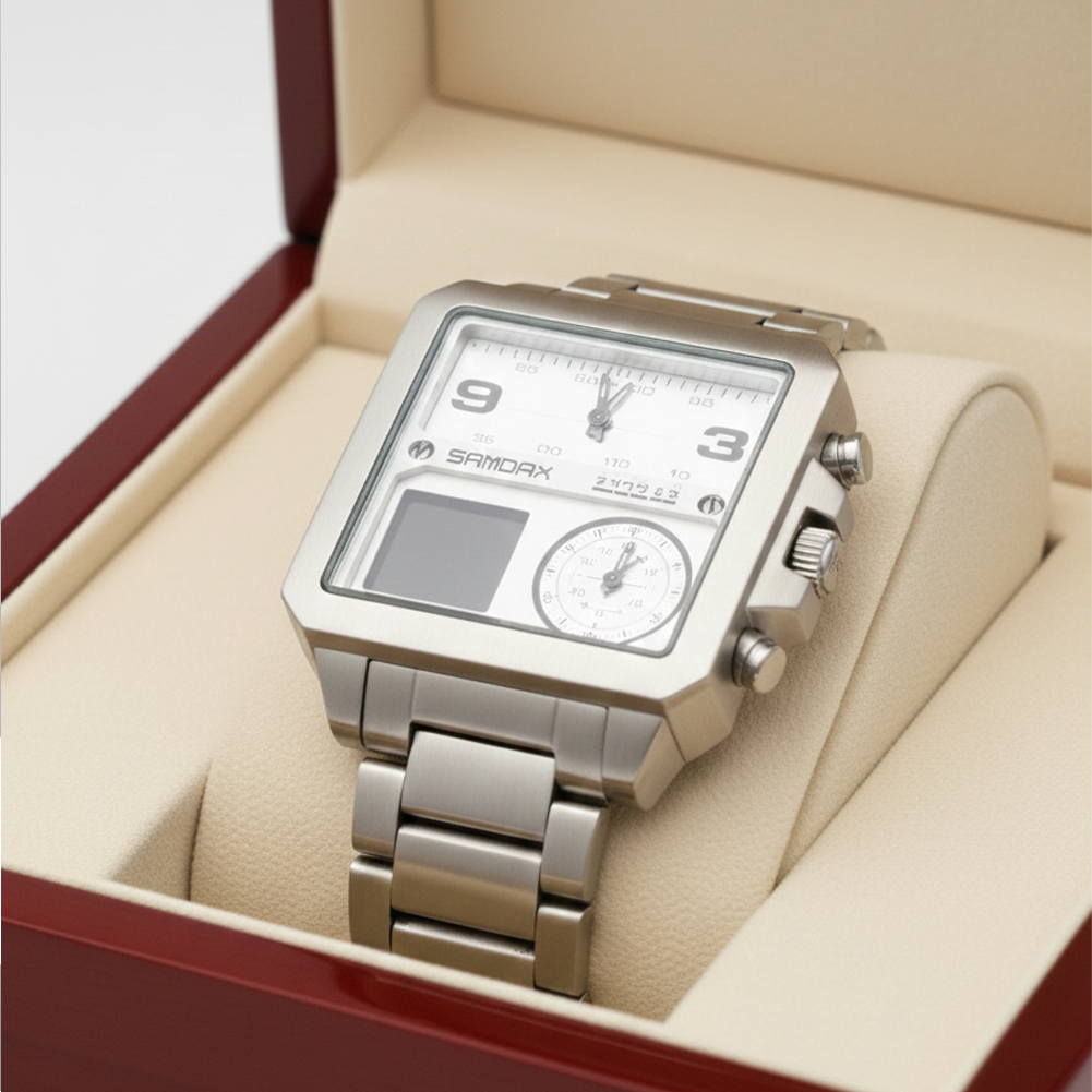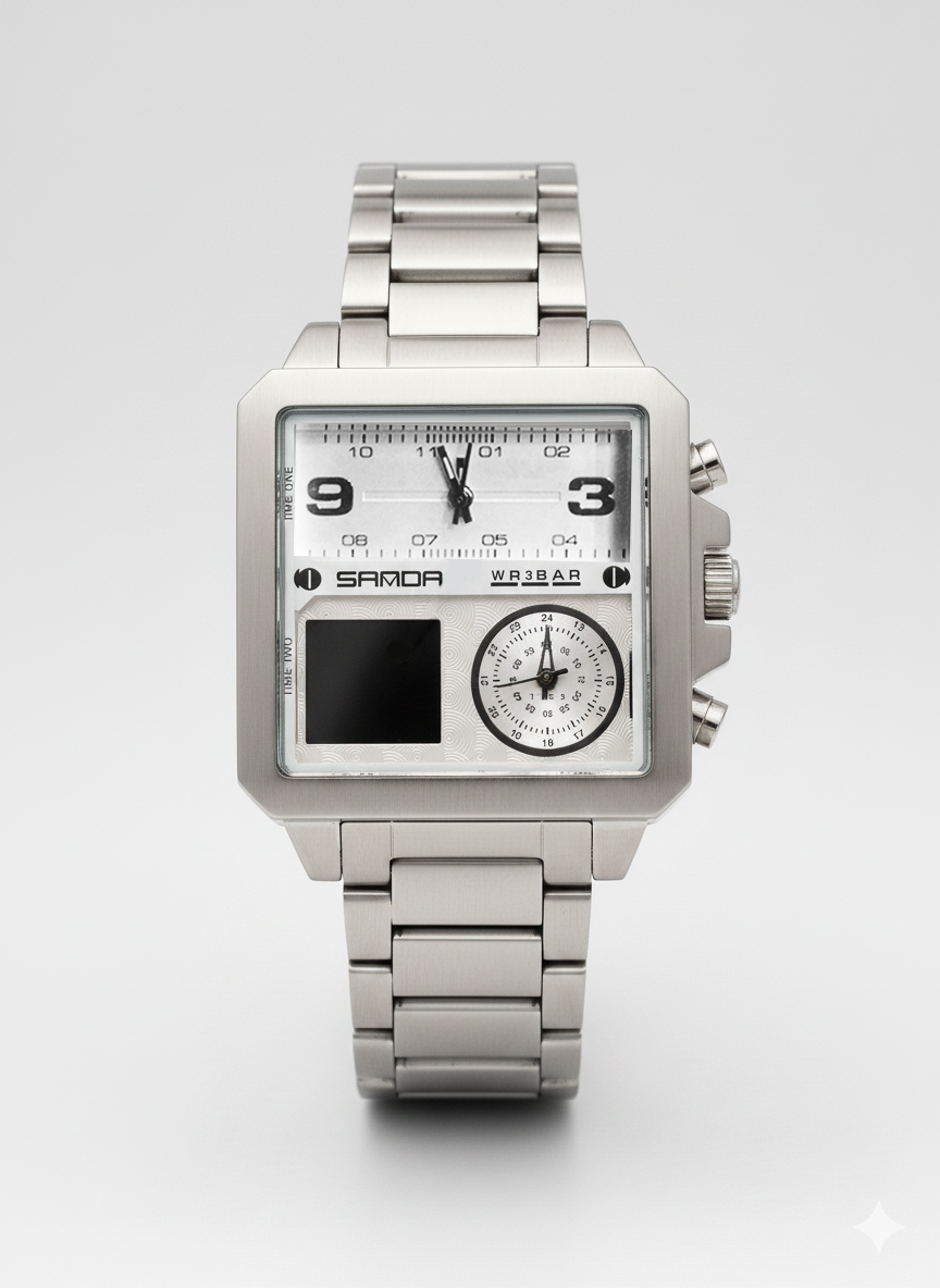 SANDA 6023 Digital Quartz Analog Dual Time Casual Square Big Dial Men’s Watch